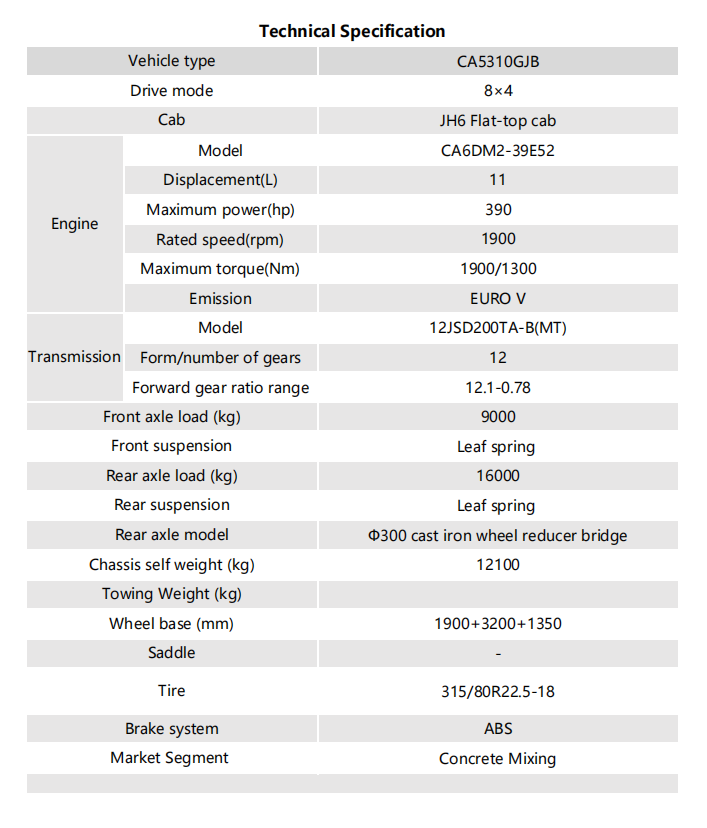 FAW TRUCKS شاحنة خلط 4×8 JH6