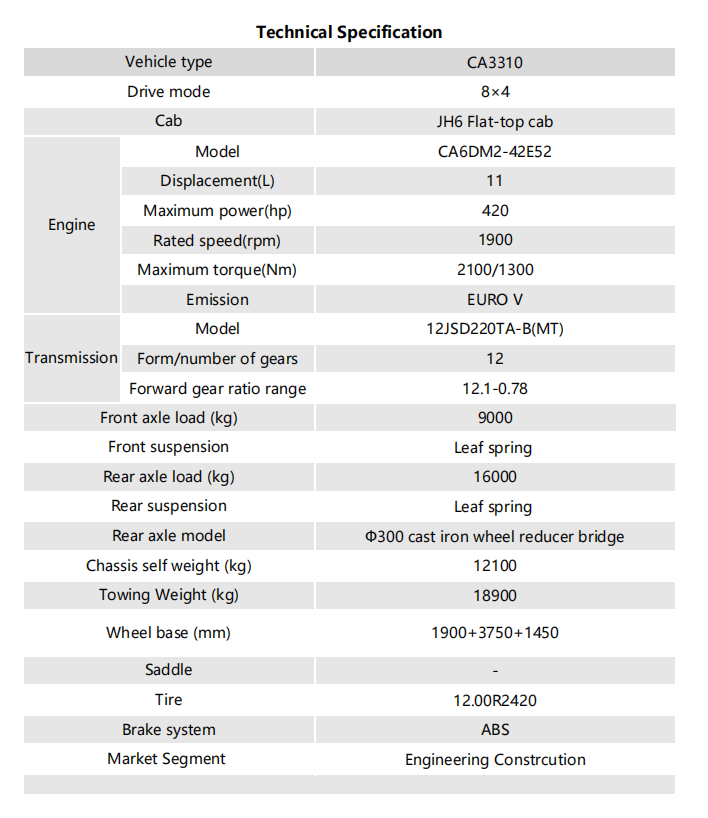محرك CA6DM2 بسعة 11 لتر، تتراوح قوته بين 390-460 حصانًا، وعزم دوران يصل إلى 1550-2200 نيوتن متر. يتم استخدامه بشكل أساسي في مركبات الجر الهندسية، ومركبات الجر على الطرق السريعة، والشاحنات، ومقلابات البضائع الثقيلة، والمركبات المتخصصة.