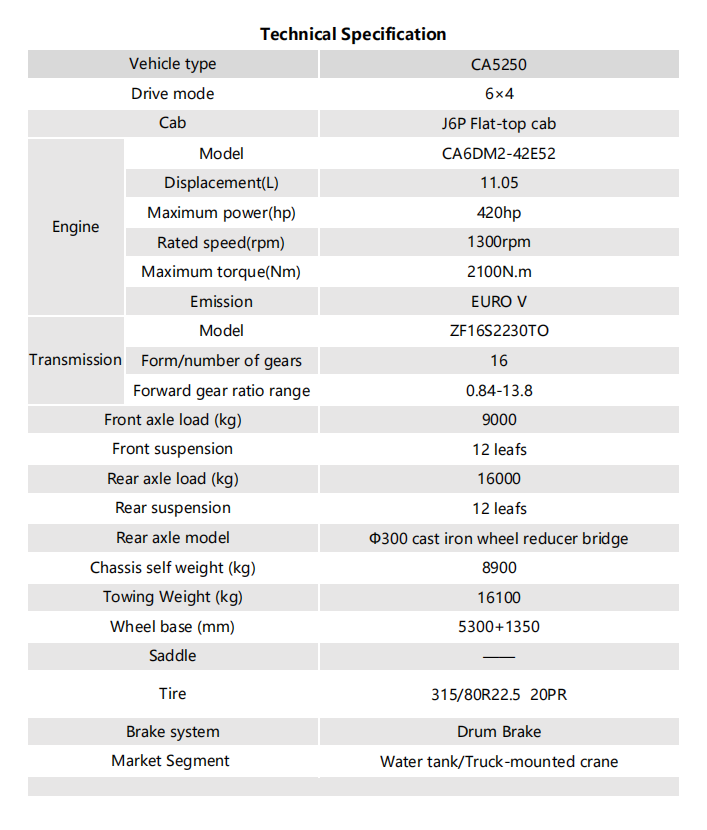 هيكل شاسيه ثقيل فاخر، متوافق مع معايير انبعاثات يورو 5، قابل للتكيف مع متطلبات تحويل المركبات المتخصصة مثل شاحنات الري، ورافعات المركبات، وصهاريج النفط.